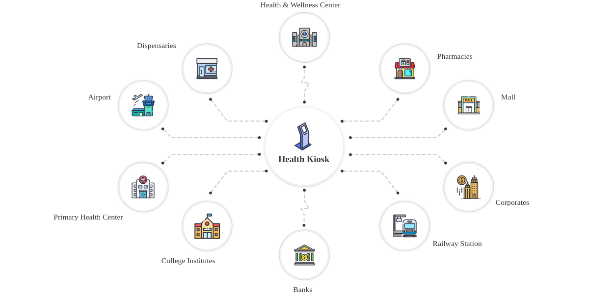 Our portable health kiosks bring essential health monitoring services to rural and remote areas, providing access to vitals checks, screenings, and health assessments in a self-service format. These kiosks play a critical role in large-scale preventive care initiatives, such as mass health screening drives, enabling governments and NGOs to reach more people and raise awareness about preventive health measures.
